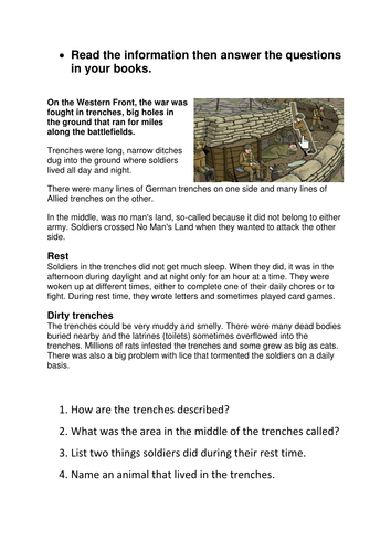 War Horse Chapter 15 Trench Conditions Teaching Resources
